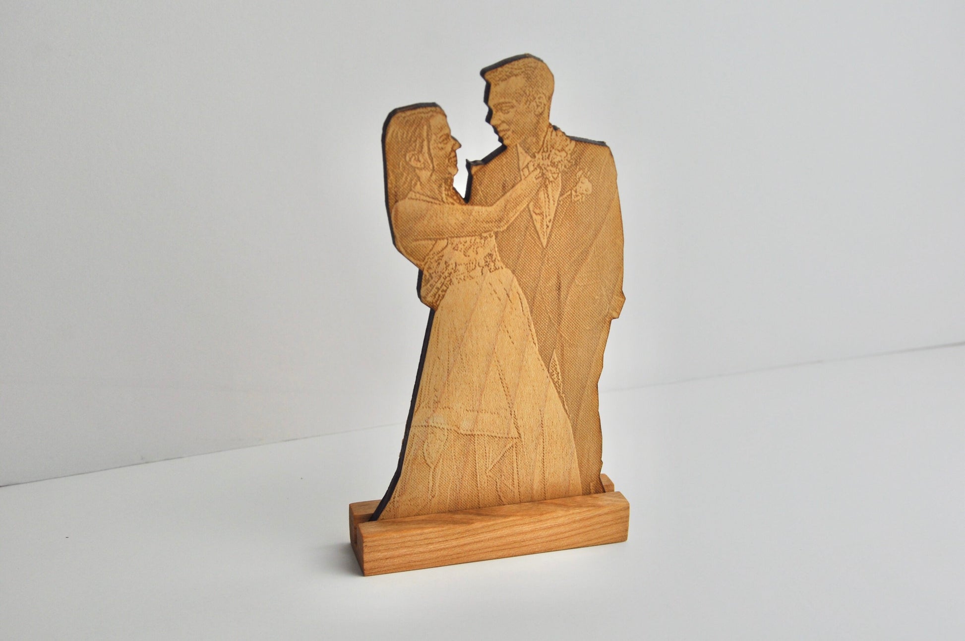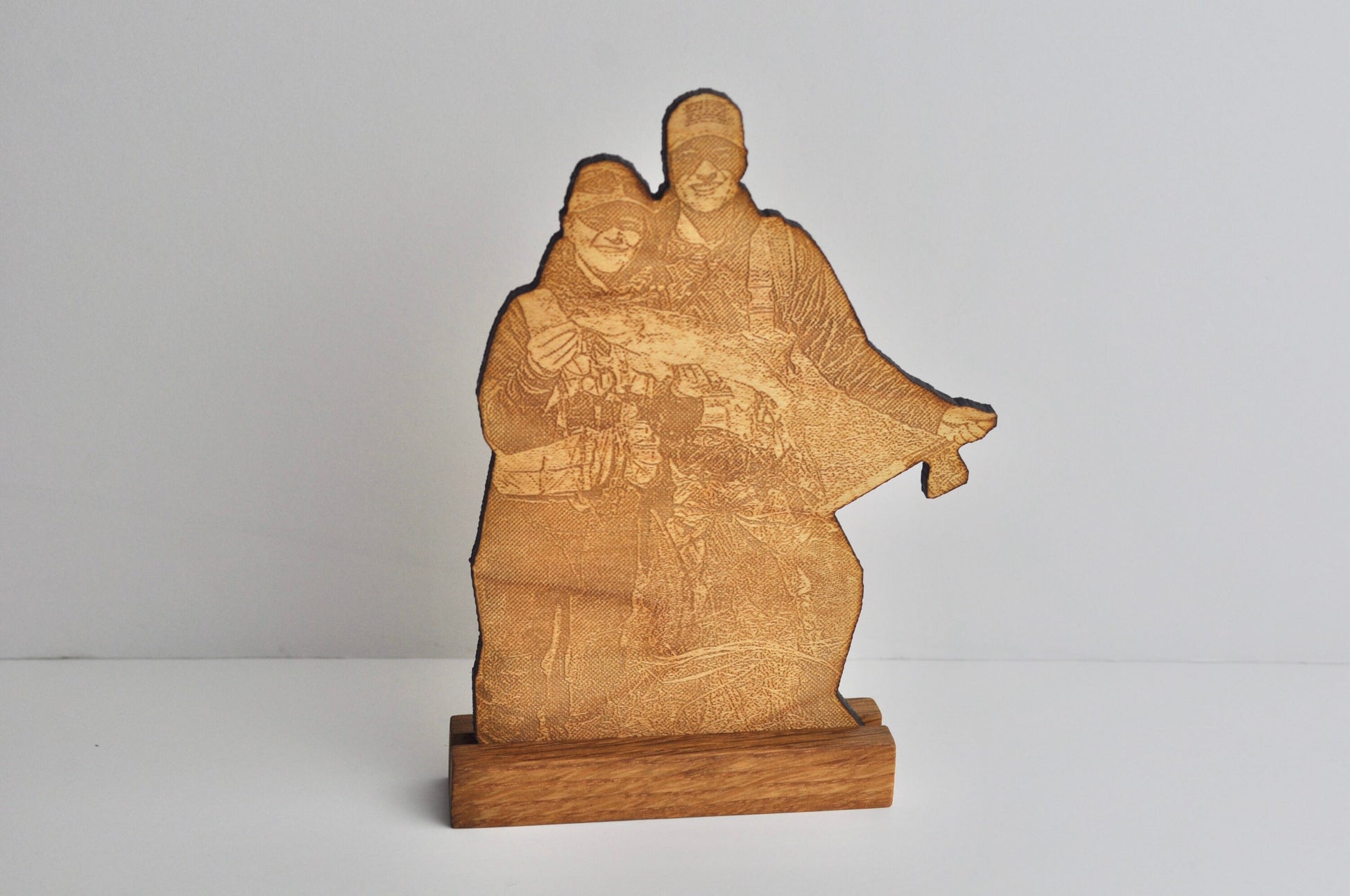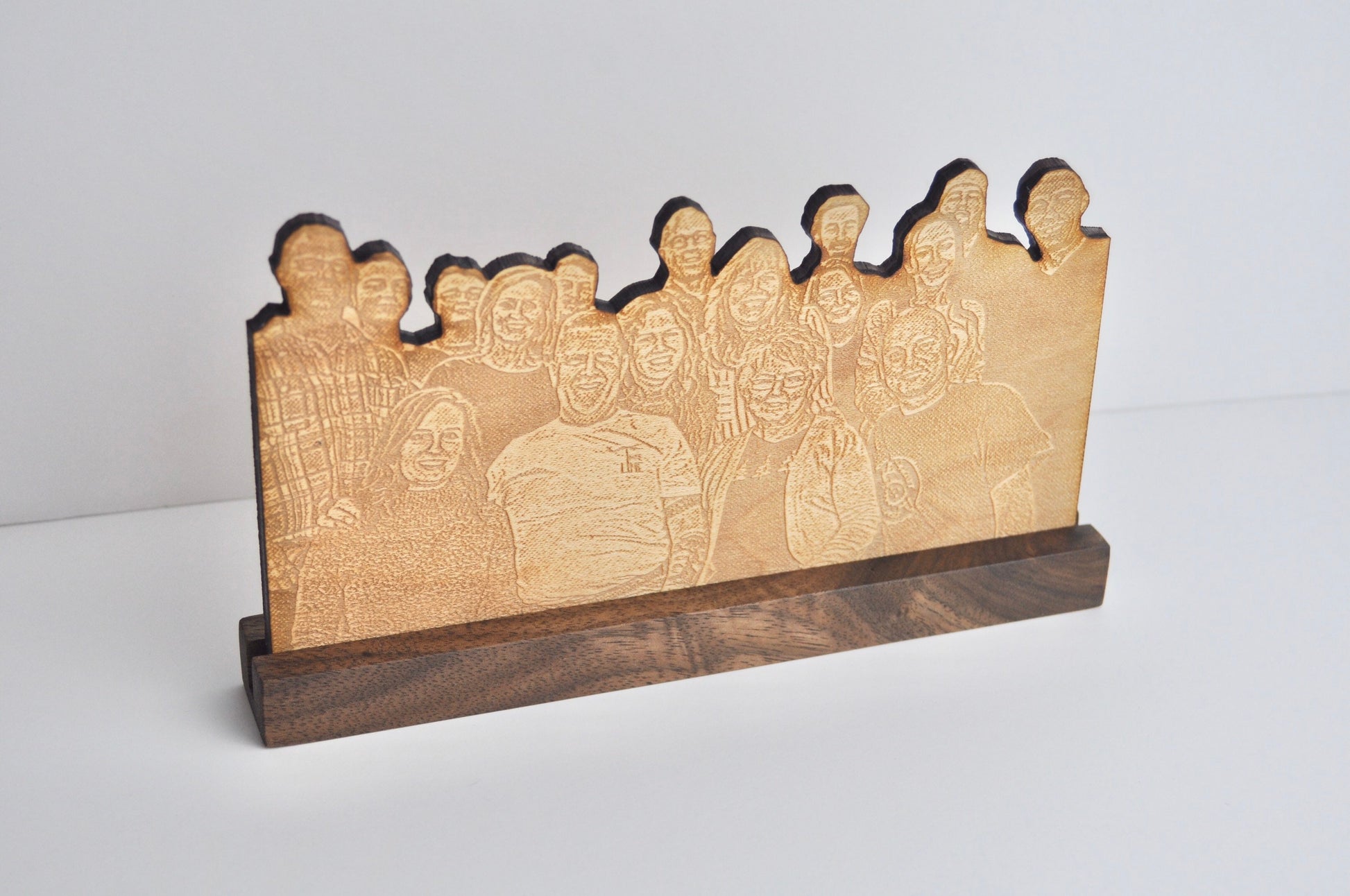Looking for a meaningful gift for a loved one or something special to add to your home? This custom engraved cutout is perfect for capturing your favorite moments in a unique way. Each custom engraved cutout is precision cut and engraved from 1/4" maple plywood, then they are paired with a solid wood base of your choice. The higher the resolution of the image the better the engraving will turn out. Please note that cutouts will be made a maximum of 7"x7". Please keep an eye out in your email for a proof from us for your custom engraving.