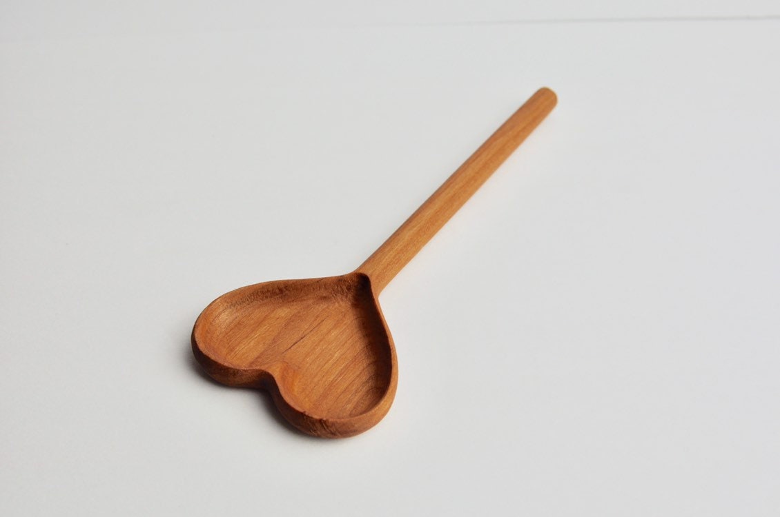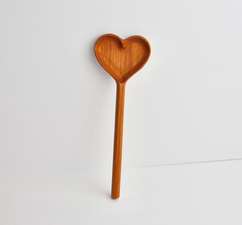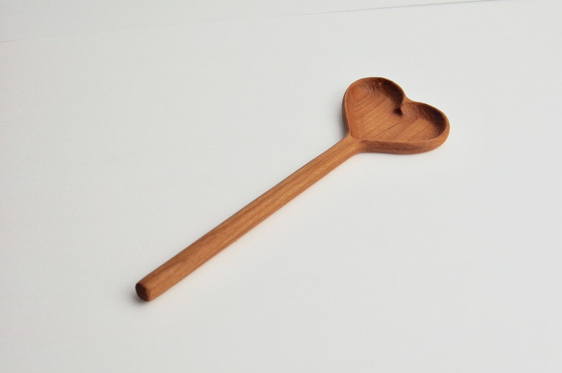 Add a little love to your next meal with this heart shaped wooden spoon. This spoon is great for stirring up and serving up your favorite dishes. Makes a great gift for a loved one or the perfect addition to your kitchen. Each spoon is carved (with love) from a single piece of wood then sanded and finished with a food safe mineral oil.