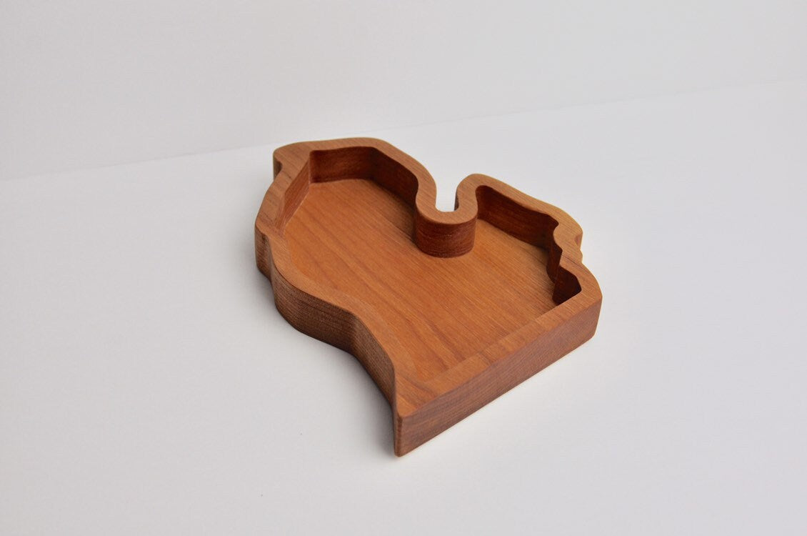Show your pride for your state and share your favorite snack at your next game day event or framily gathering. The perfect gift for the Michigan enthusiast or the ultimate party host. Each Michigan snack tray is cut from a single piece of wood then sanded and finished with a food safe mineral oil. Not your home state? Message us about ordering a custom piece to match the state you love.