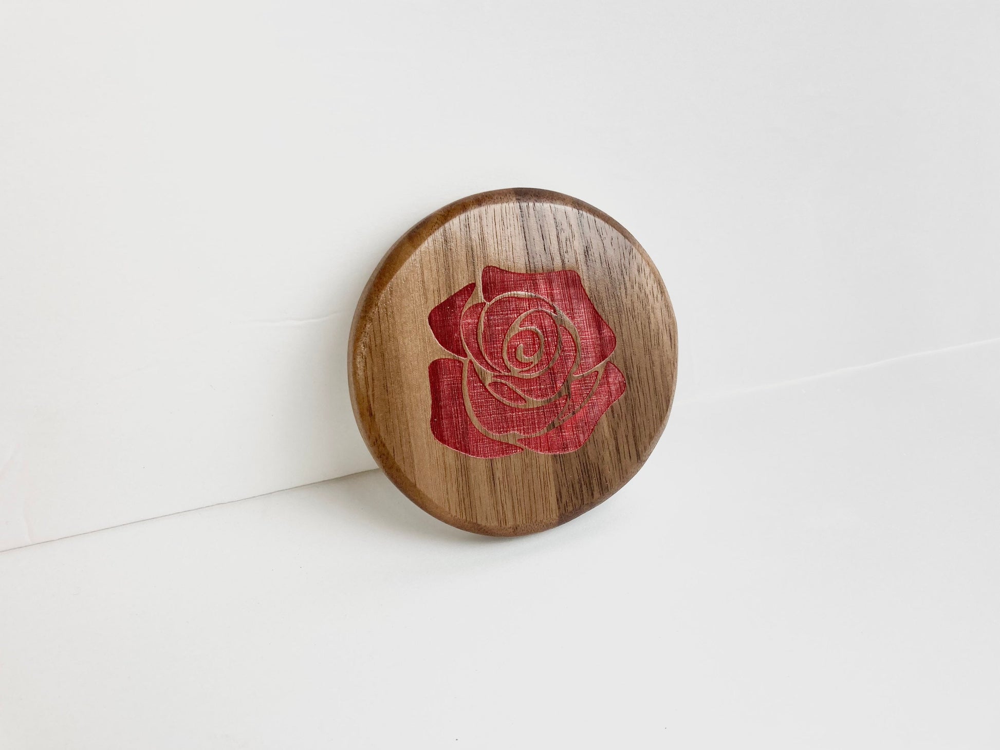 Our classic pocket mirror, but with an artful twist, featuring a laser engraved and painted rose on the back. This pocket mirror is designed to be compact and simple so it's perfect to take on the go or stash away for emergencies. Makes a great gift for that beauty guru in your life or even the perfect addition to your home. Each pocket mirror is carved from a single piece of wood then sanded and finished to protect it from everyday use and highlight the natural beauty of the wood.
