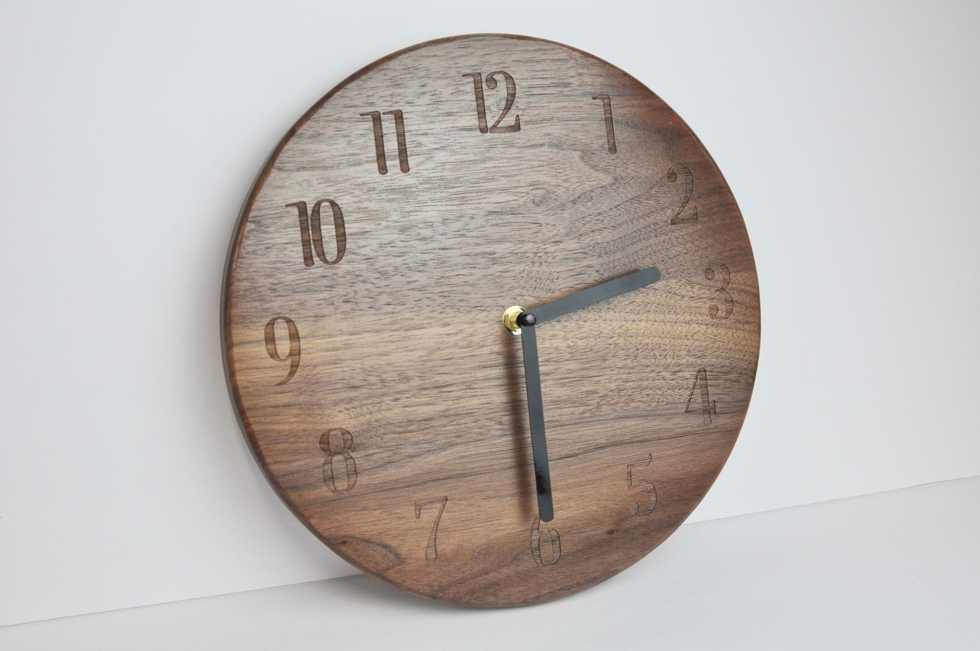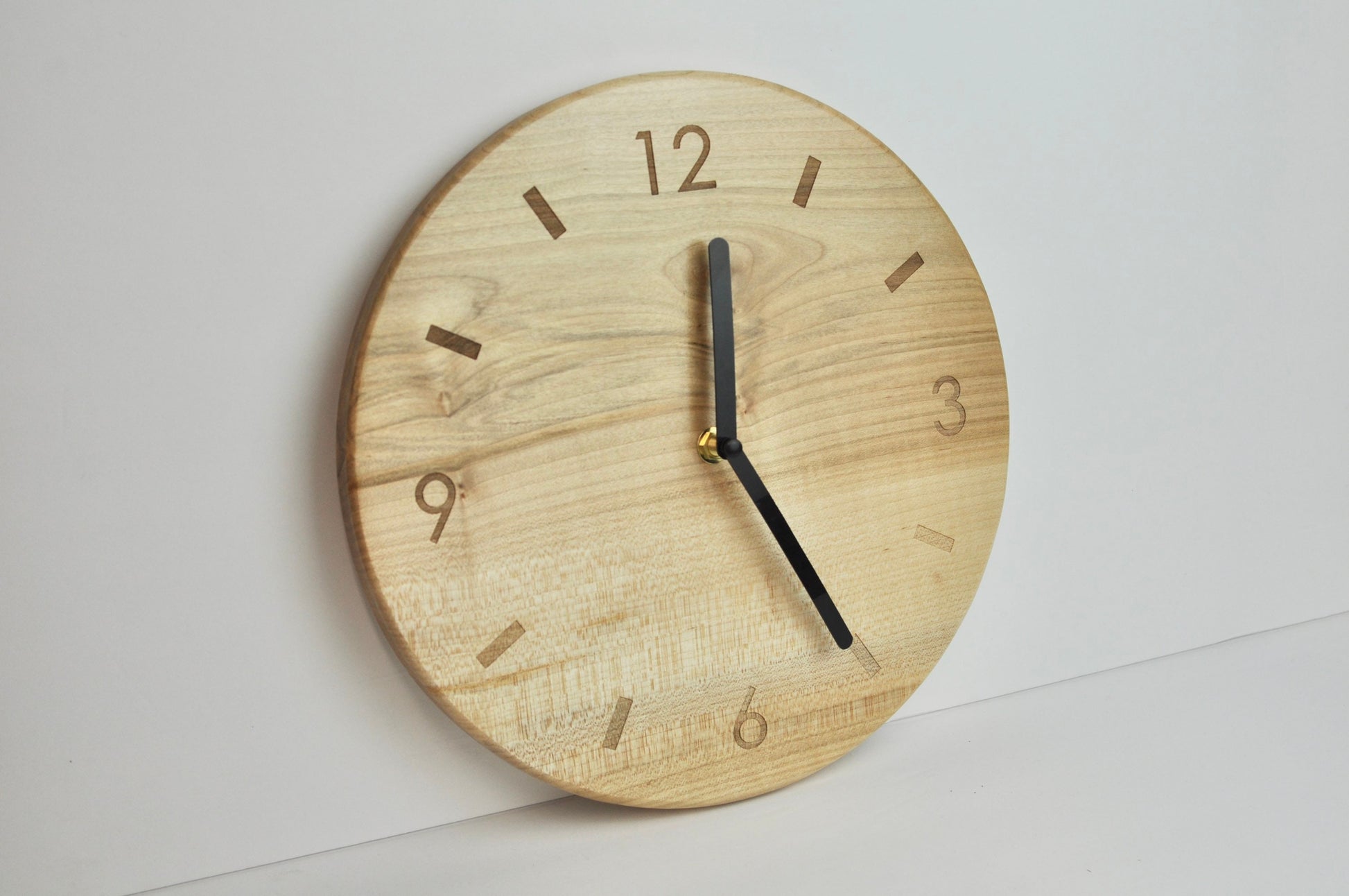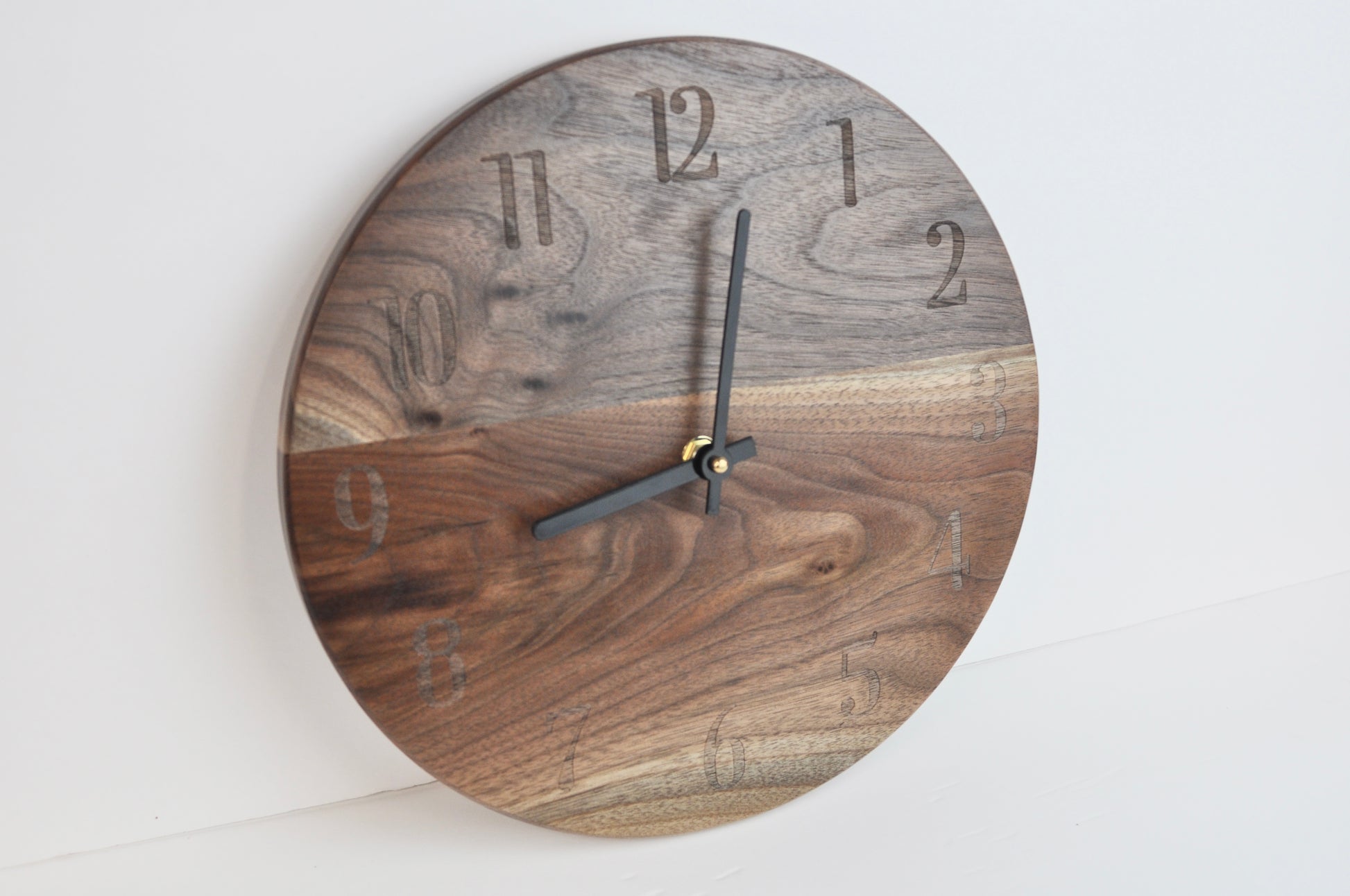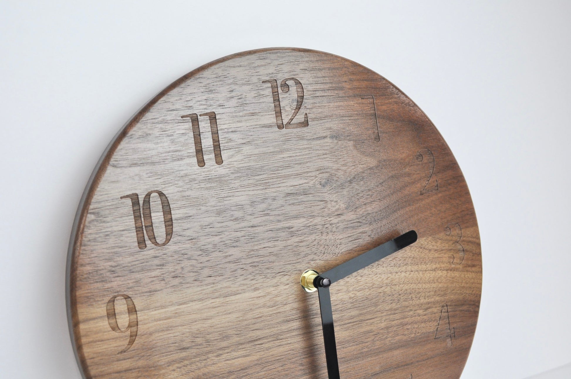 Sleek, modern, contemporary, minimalist...this clock fits any style. Choose the wood, numbers and hands to best suit your room. Each clock is cut out of wood then sanded and finished to protect it from everyday use and highlight the natural beauty of the wood.