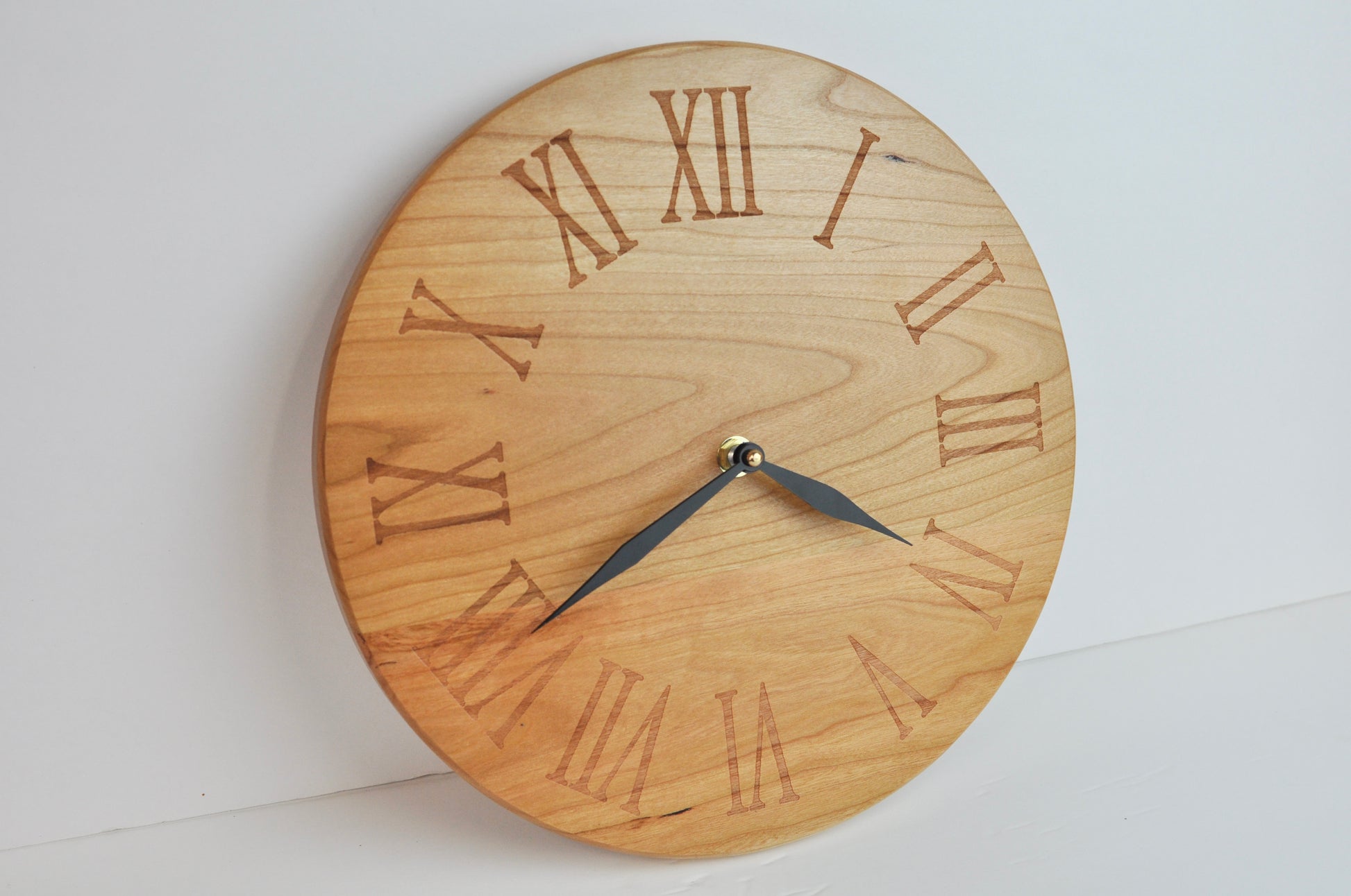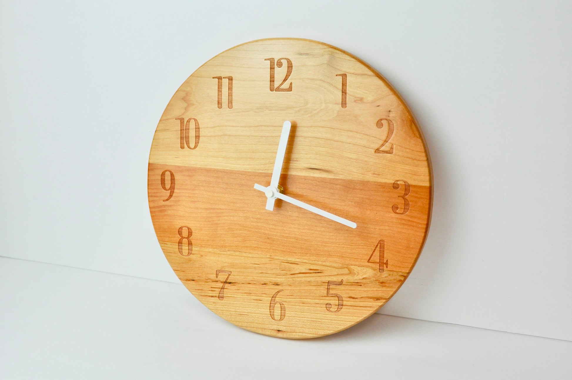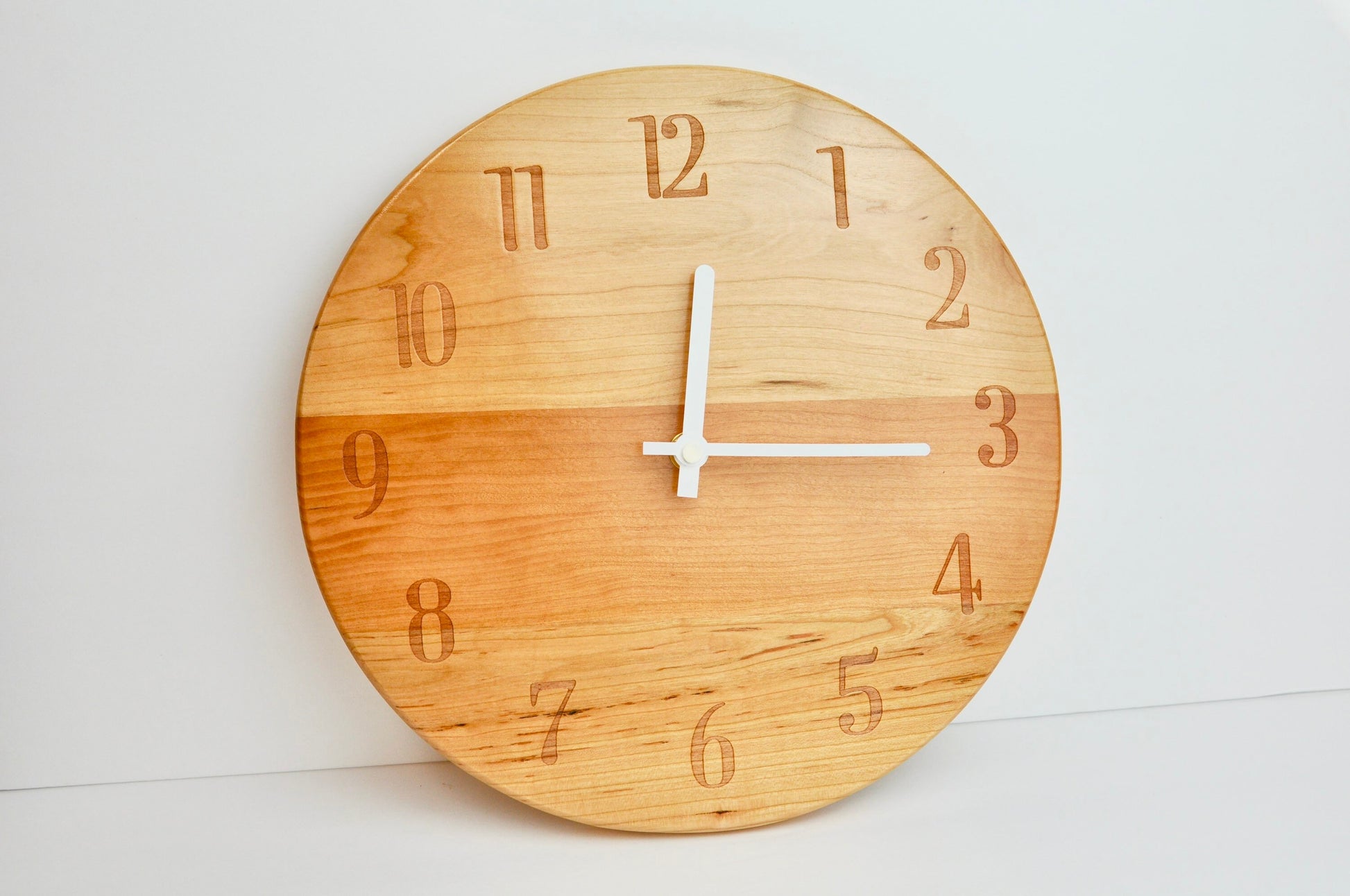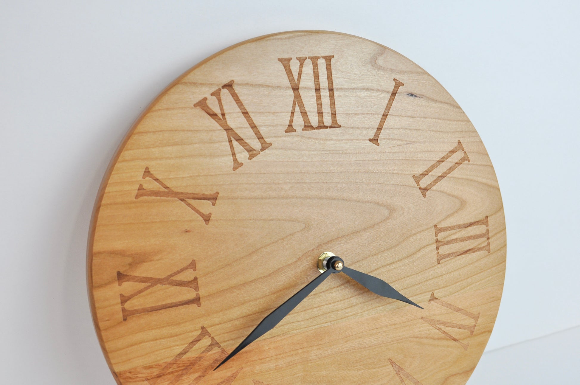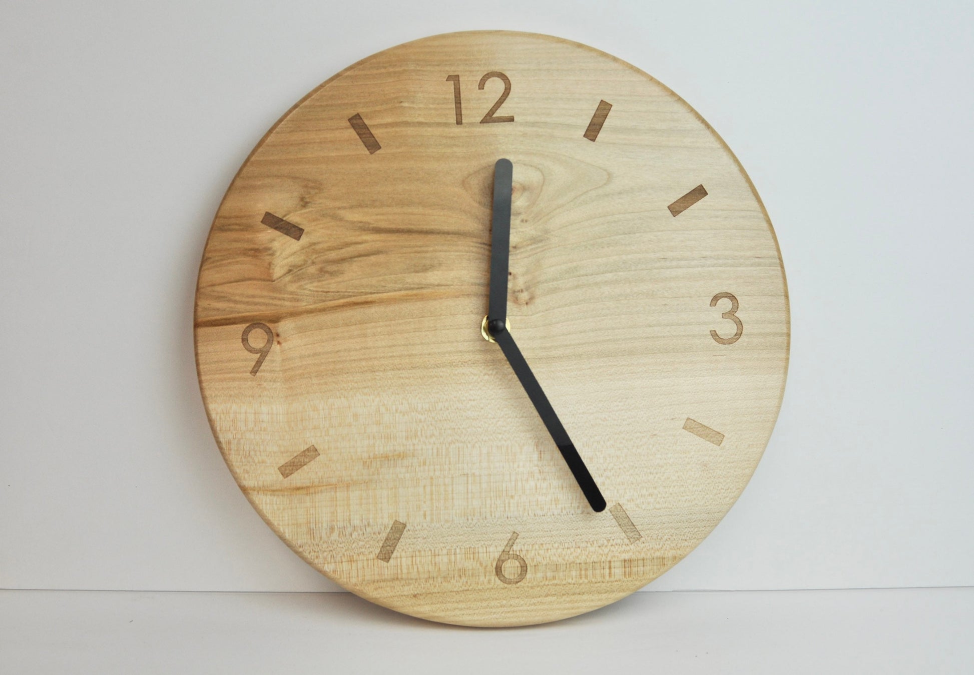 Sleek, modern, contemporary, minimalist...this clock fits any style. Choose the wood, numbers and hands to best suit your room. Each clock is cut out of wood then sanded and finished to protect it from everyday use and highlight the natural beauty of the wood.