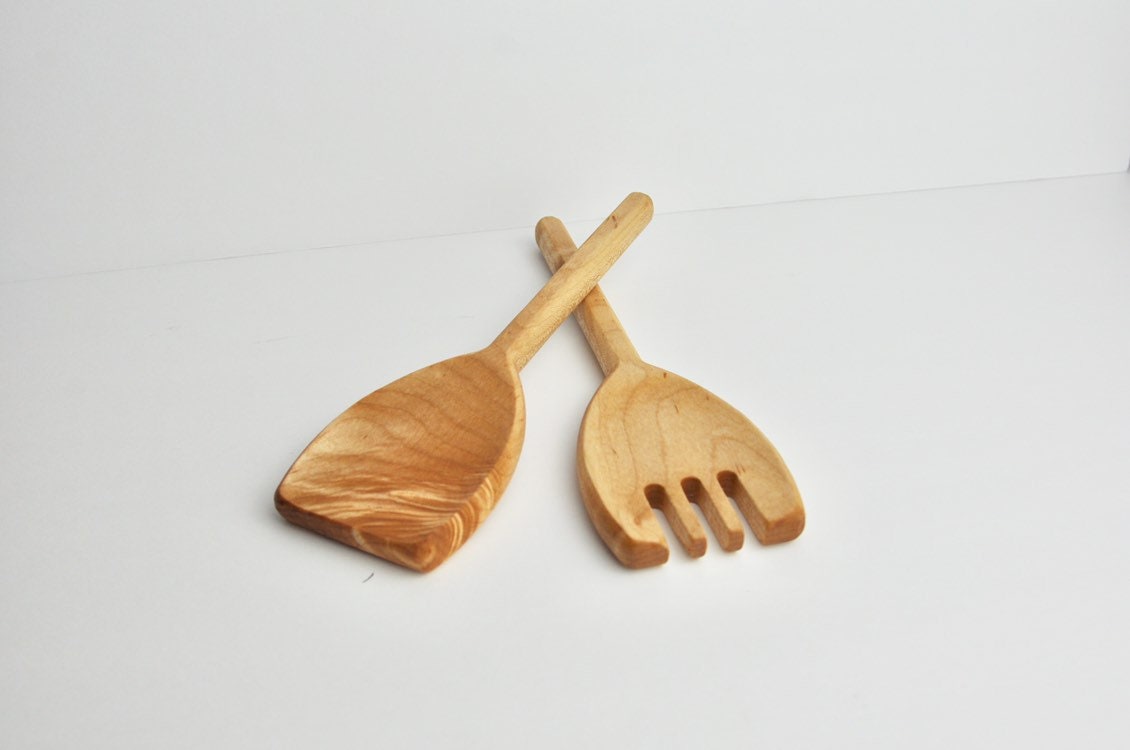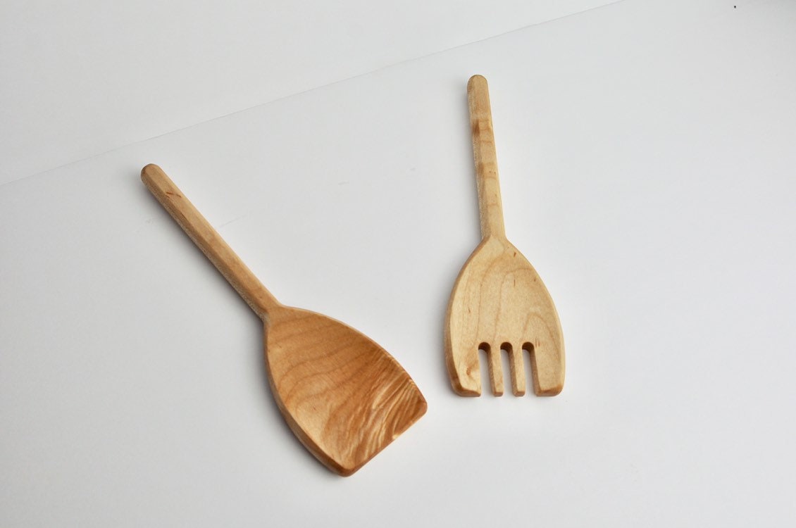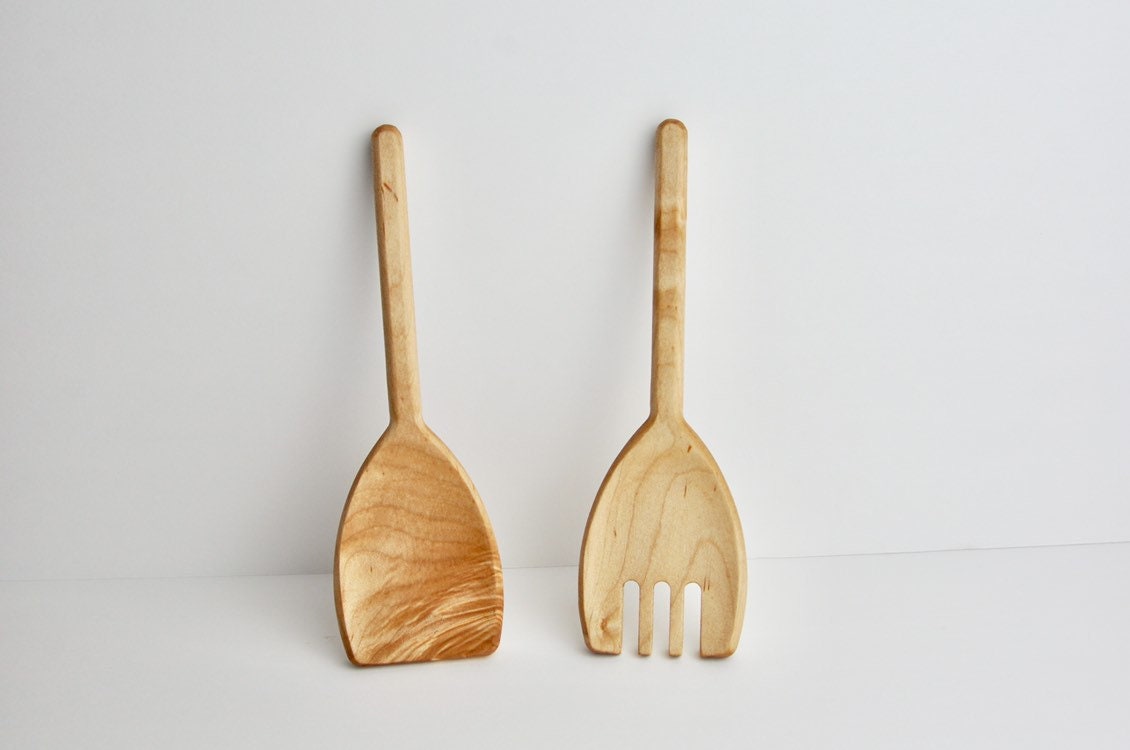 Serve fresh greens in style with these salad serving tongs. The perfect addition to your kitchen utensils or an amazing gift for a loved one. Each set of tongs is carved from a single piece of wood then sanded and finished with a food safe mineral oil.