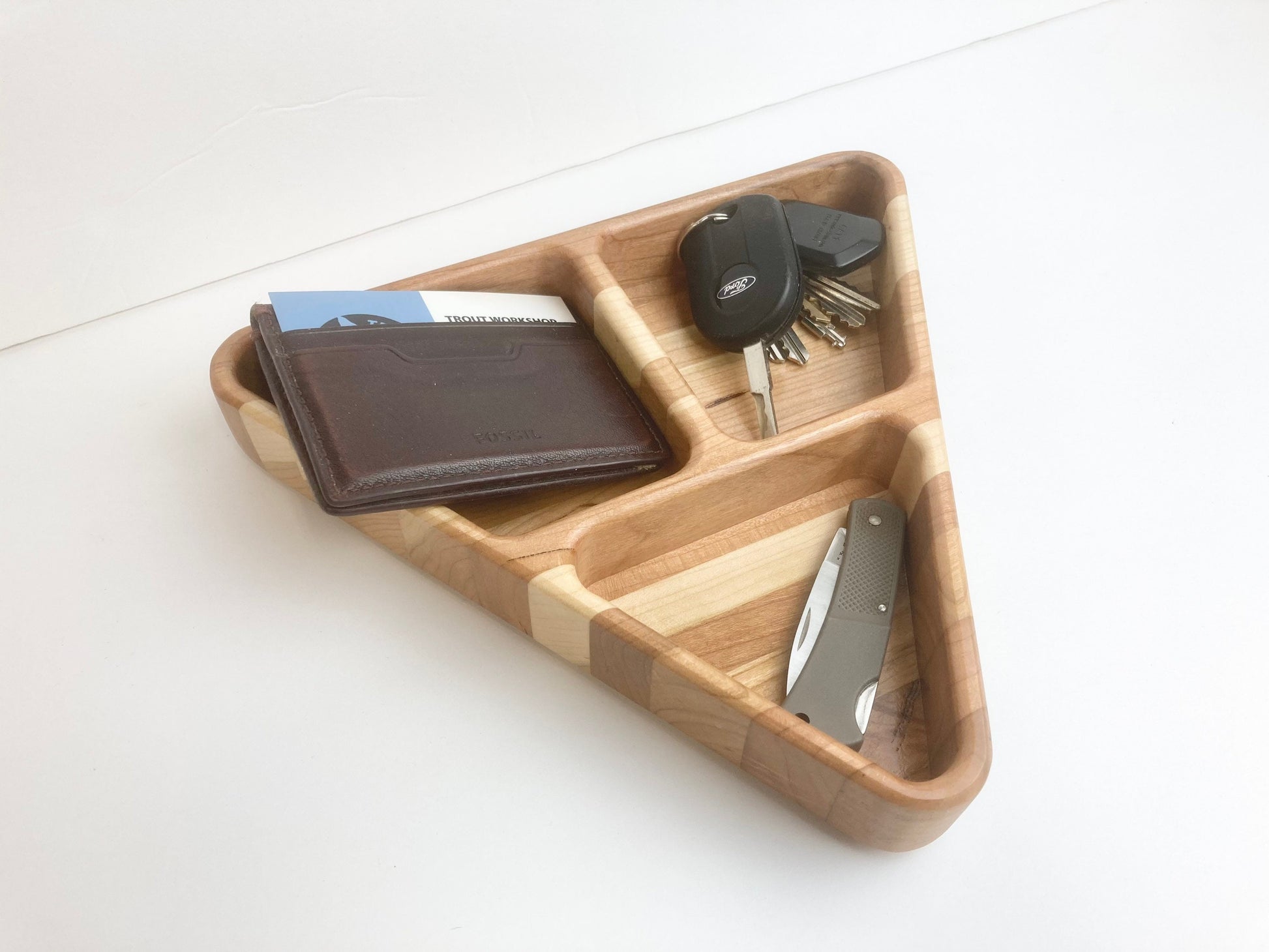 Because of variation in wood no two pieces will be identical. Items pictured in valet tray not included.